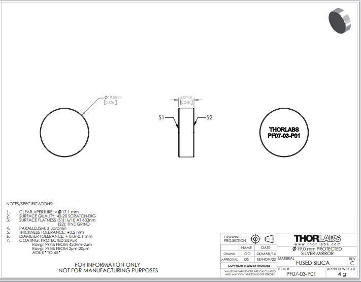 Thorlabs索雷博 PF07-03-P01 平面反射镜