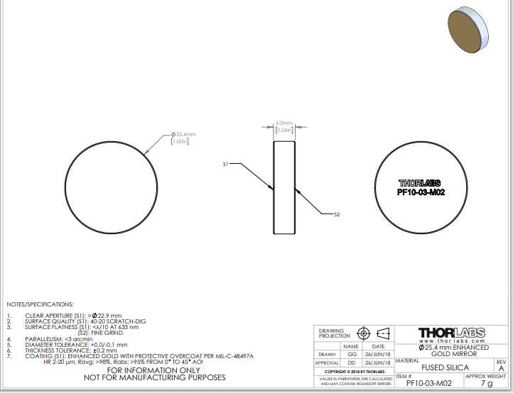 Thorlabs索雷博 PF10-03-M02 平面反射镜