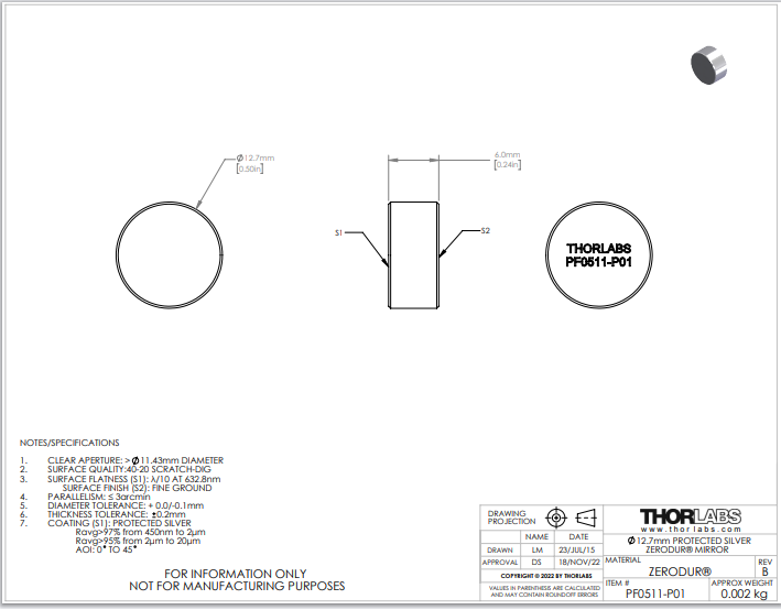 Thorlabs索雷博 PF0511-P01 Zerodur®反射镜