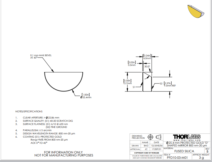 Thorlabs索雷博       PFD10-03-M01   D形反射镜