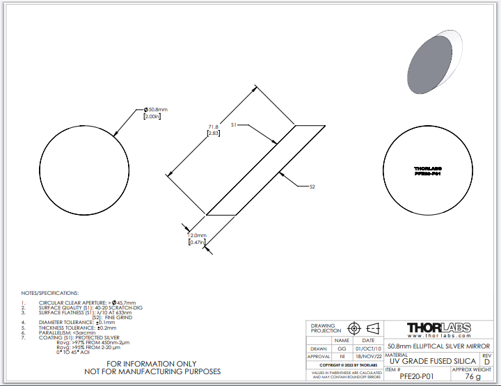 Thorlabs索雷博       PFE20-P01   椭圆反射镜