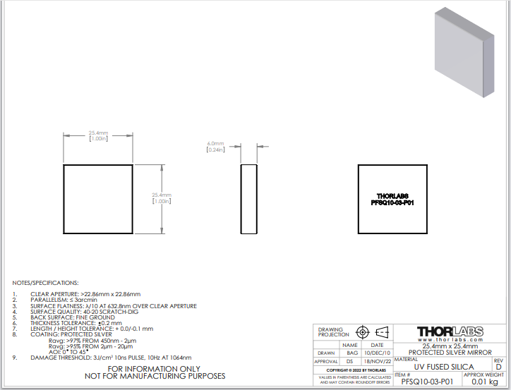Thorlabs索雷博 PFSQ10-03-P01 平面反射镜