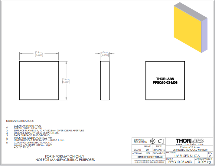 Thorlabs索雷博 PFSQ10-03-M03 方形平面反射镜