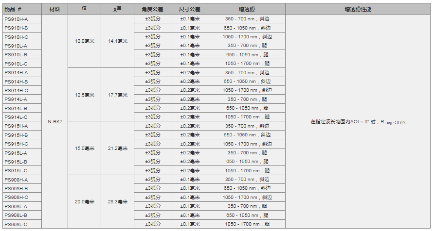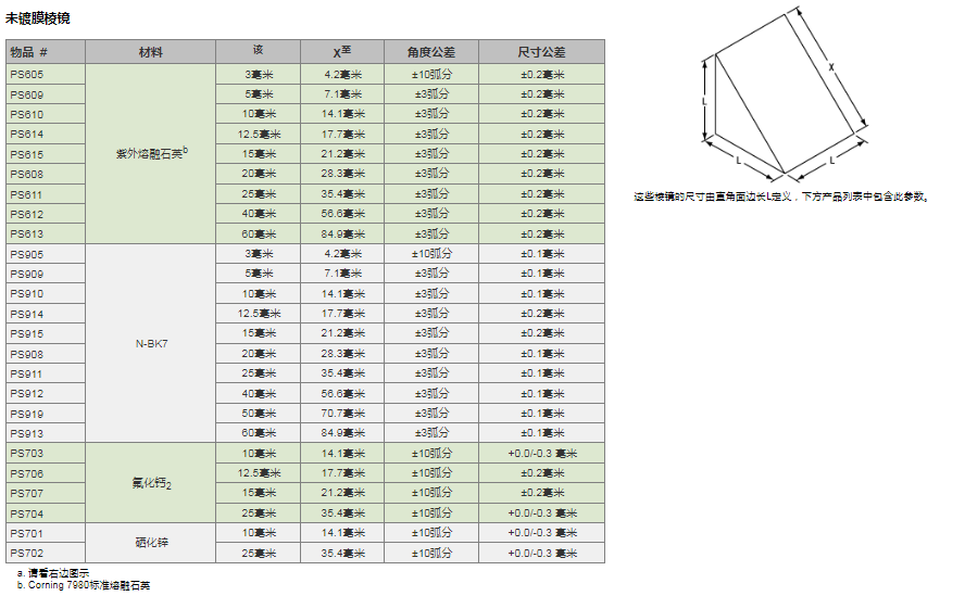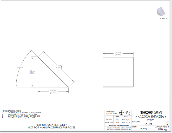 Thorlabs索雷博 PS703 氟化钙直角棱镜