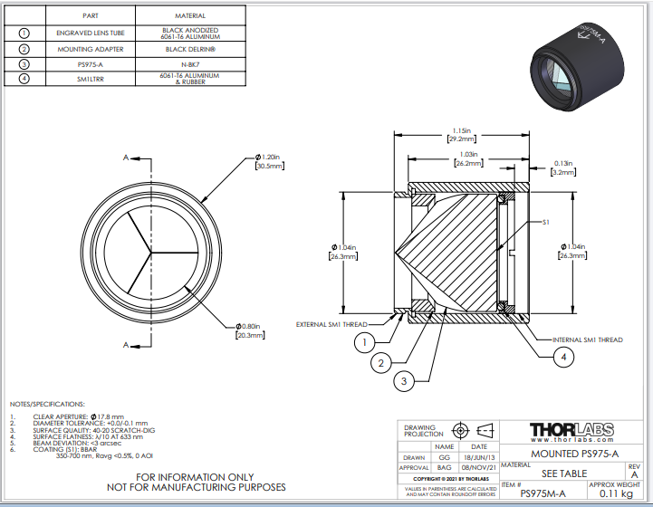 Thorlabs索雷博       PS975M-A   TIR回射器