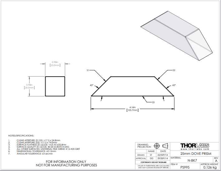 Thorlabs索雷博       PS995   道威棱镜