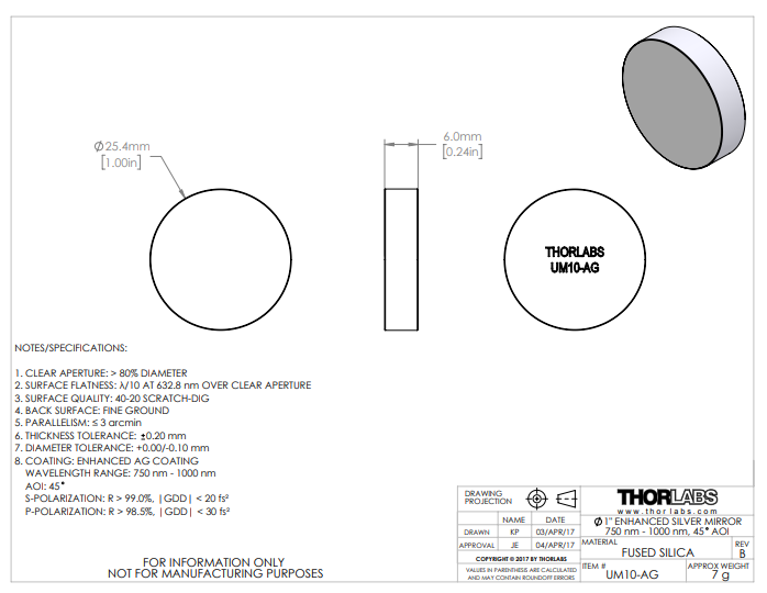 Thorlabs索雷博 UM10-AG-10 平面反射镜
