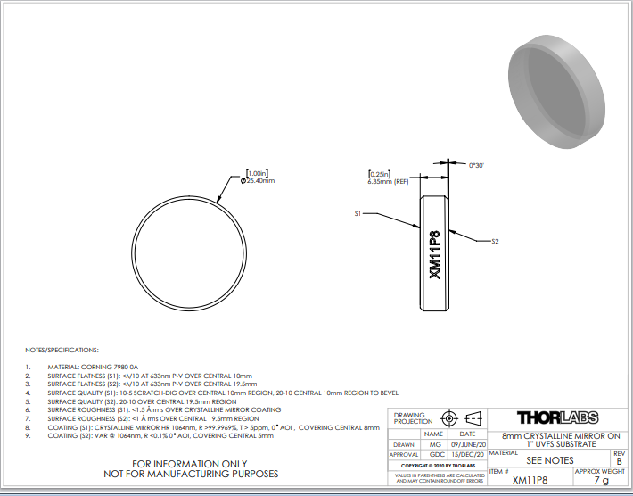 Thorlabs索雷博 XM11P8 平面超级反射镜