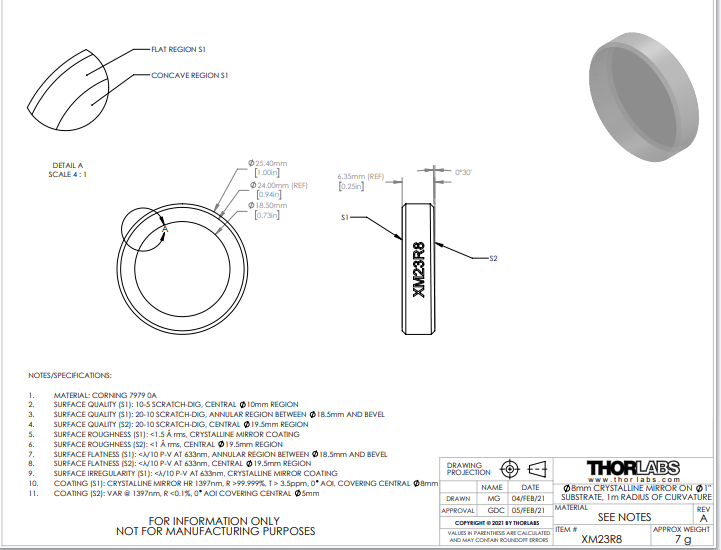 Thorlabs索雷博 XM23R8 凹面超级反射镜