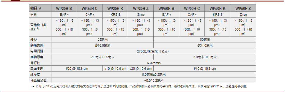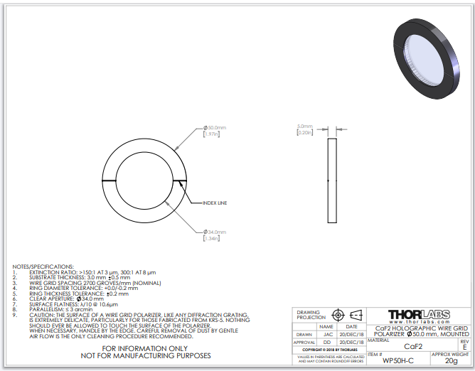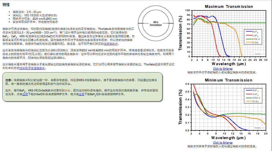 Thorlabs索雷博 WP50H-C - CaF2全息线栅偏振片