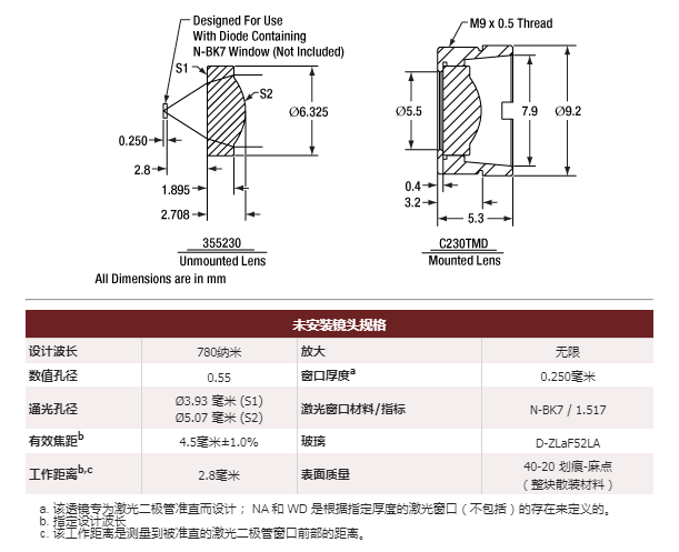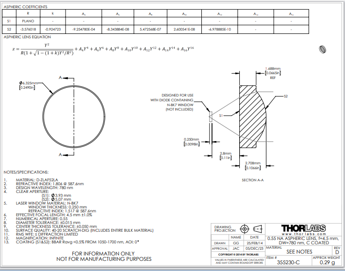 Thorlabs索雷博 355230-C 非球面透镜