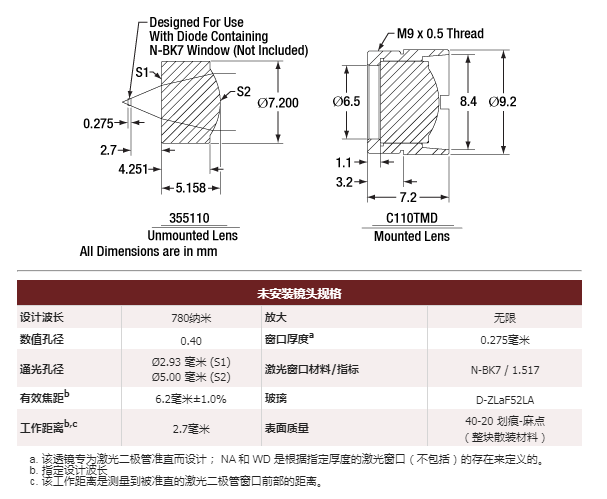 Thorlabs索雷博     355110-C   非球面透镜