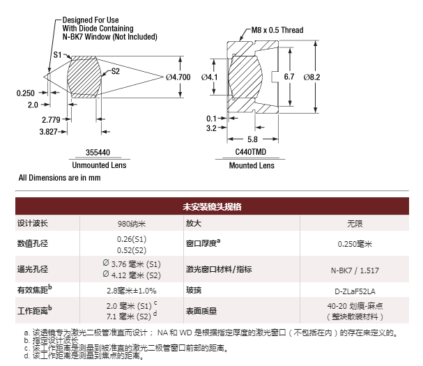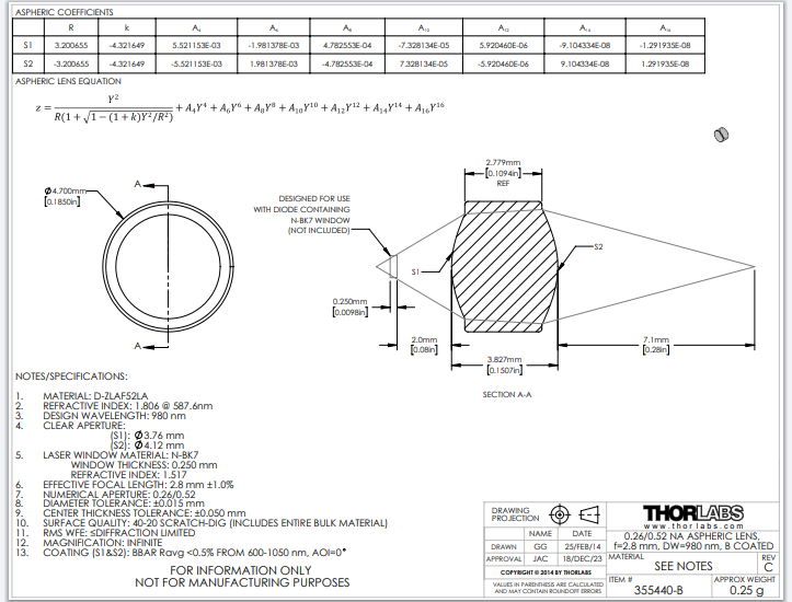 Thorlabs索雷博 355440-B 非球面透镜