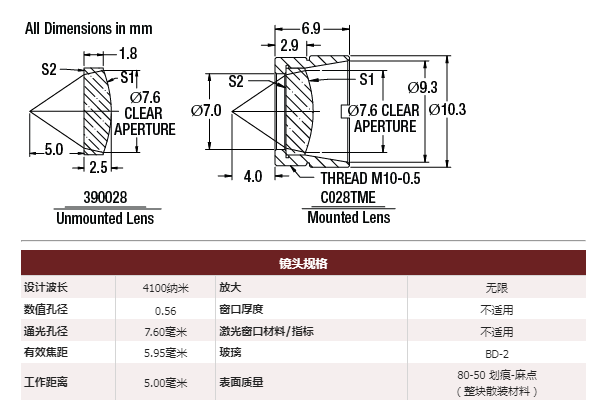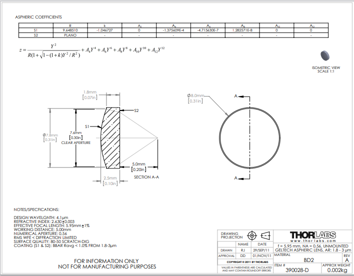 Thorlabs索雷博     390028-D   非球面透镜