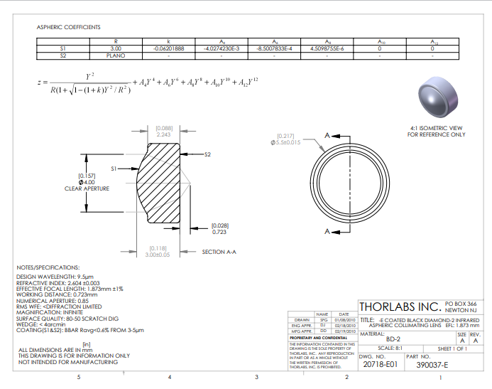折射率a2.5 µm 时为 2.630 ± 0.0032.795 ± 0.003 @ 3.5 µm