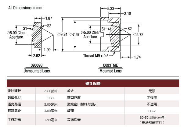 Thorlabs索雷博 390093-E 非球面透镜