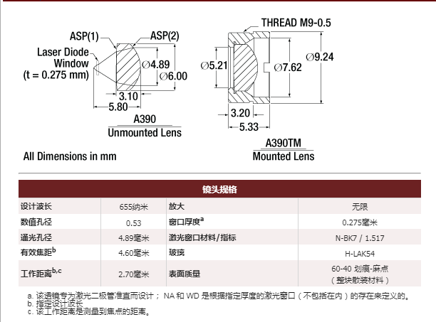 Thorlabs索雷博 A390-B 非球面透镜