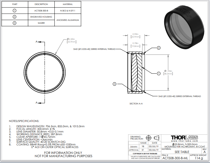 Thorlabs索雷博 ACT508-300-B-ML 消色差双胶合透镜