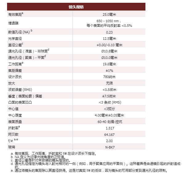 Thorlabs索雷博 AL1225M-B 非球面透镜