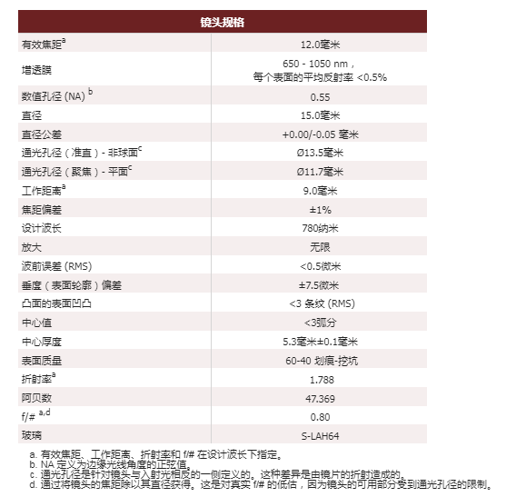 Thorlabs索雷博 AL1512-B 非球面透镜