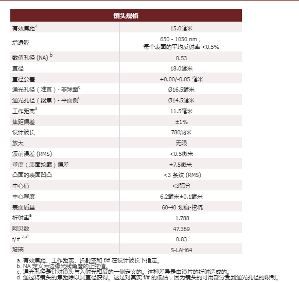 Thorlabs索雷博     AL1815-B   非球面透镜