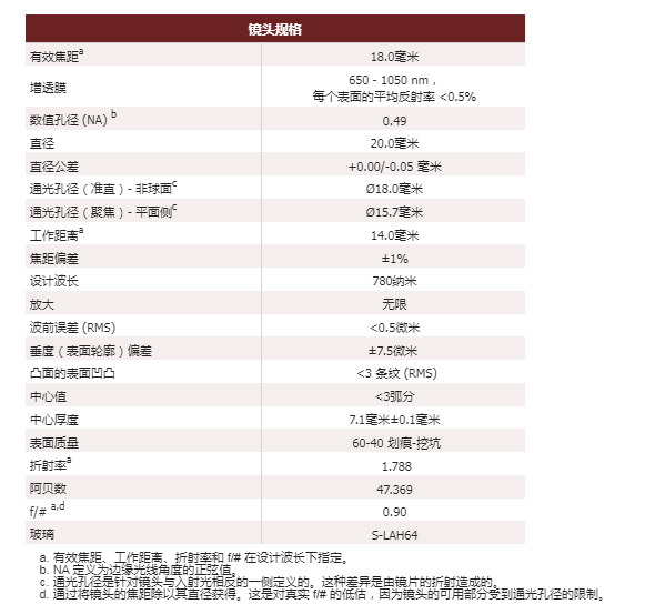 Thorlabs索雷博 AL2018-B 非球面透镜