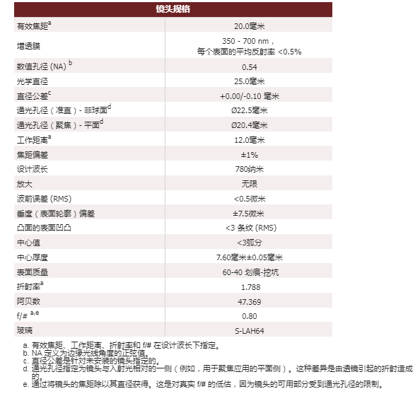 Thorlabs索雷博     AL2520M-A   非球面透镜