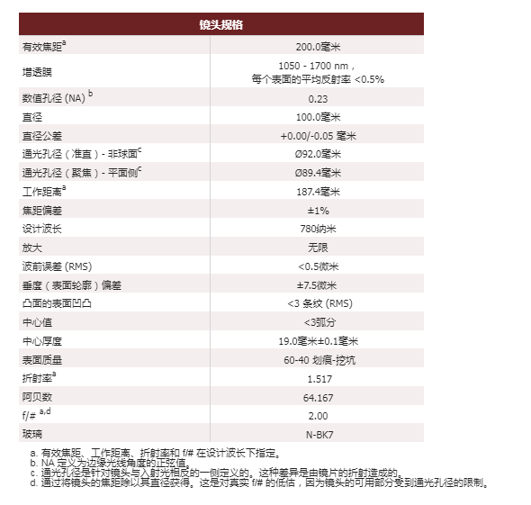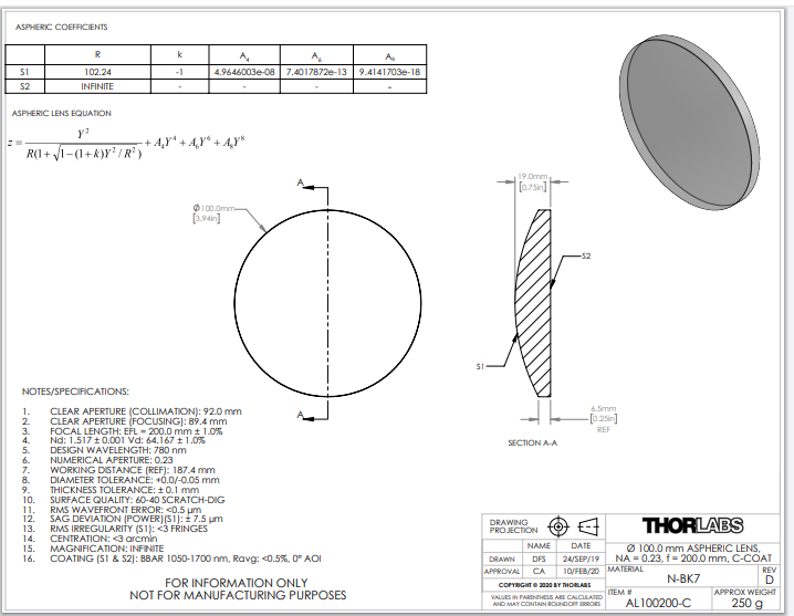 Thorlabs索雷博     AL100200-C   非球面透镜