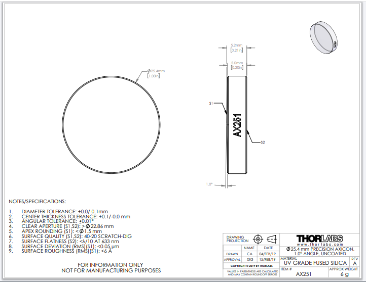 Thorlabs索雷博 AX251 锥透镜