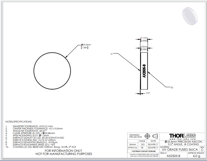 Thorlabs索雷博     AX2505-B   锥透镜