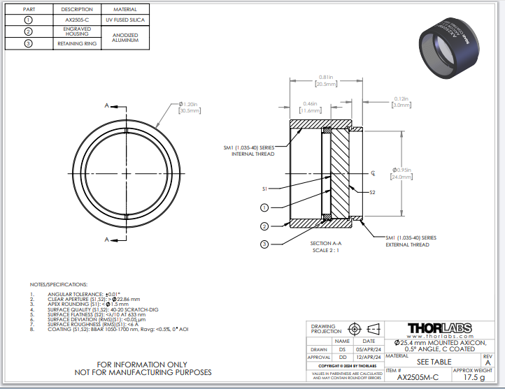 Thorlabs索雷博 AX2505M-C 锥透镜