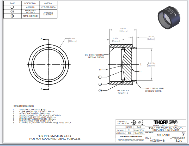 Thorlabs索雷博 AX2510M-B 锥透镜