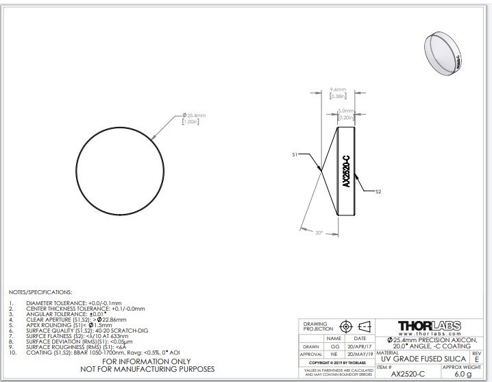 Thorlabs索雷博 AX2520-C 锥透镜