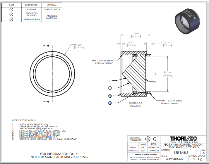 Thorlabs索雷博     AX2540M-B   锥透镜
