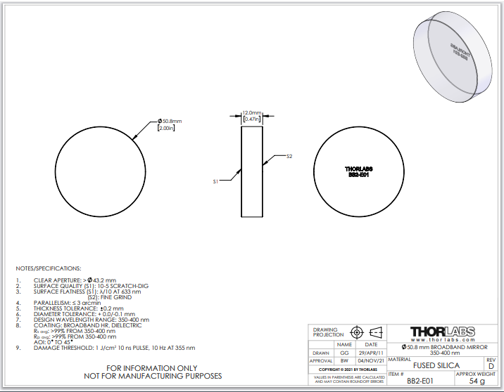Thorlabs索雷博     BB2-E01   平面反射镜
