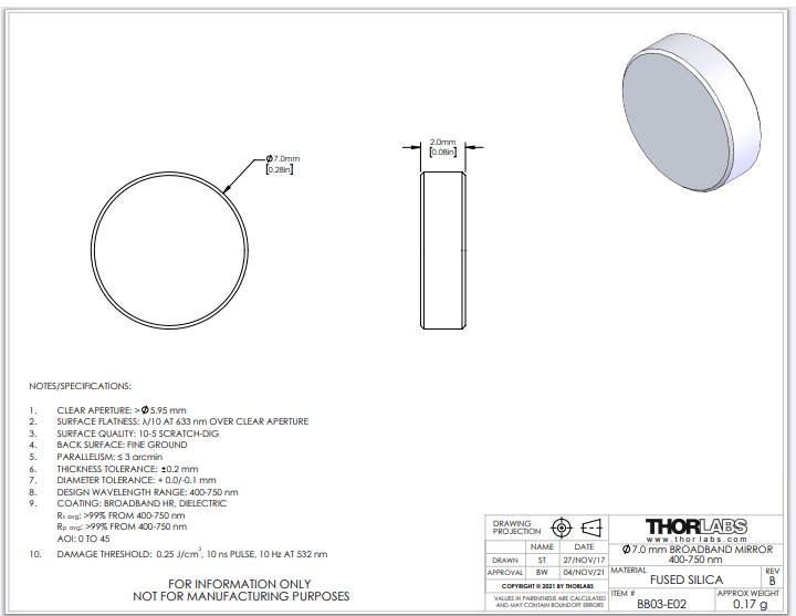 Thorlabs索雷博 BB03-E02 平面反射镜