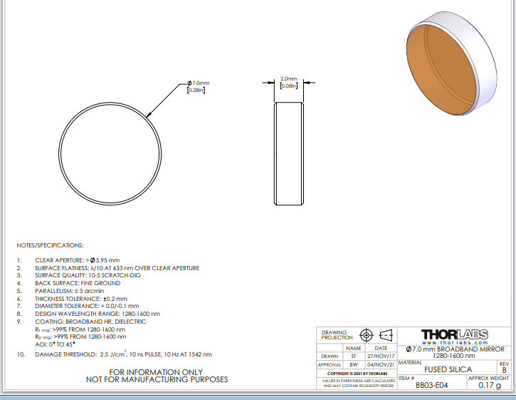Thorlabs索雷博     BB03-E04   平面反射镜
