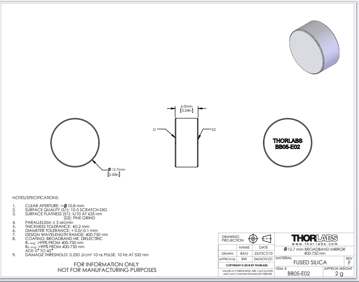 Thorlabs索雷博     BB05-E02   平面反射镜