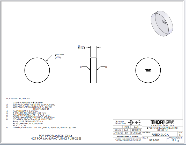 Thorlabs索雷博     BB3-E02   平面反射镜