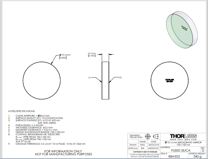 Thorlabs索雷博 BB4-E03 平面反射镜