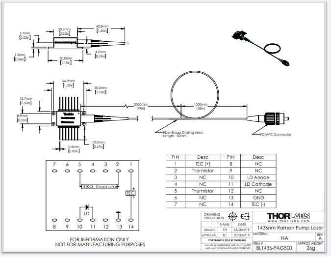 Thorlabs索雷博     BL1436-PAG500 - 光纤布拉格光栅稳定型激光器