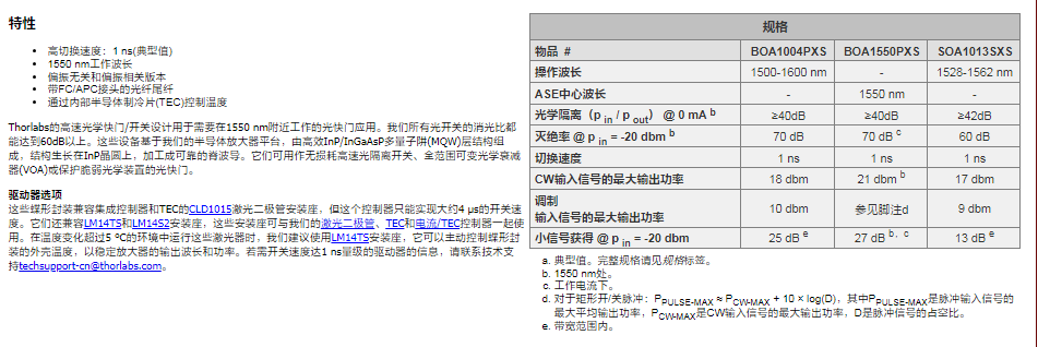 Thorlabs索雷博     BOA1004PXS - 1550 nm偏振相关光学快门/开关