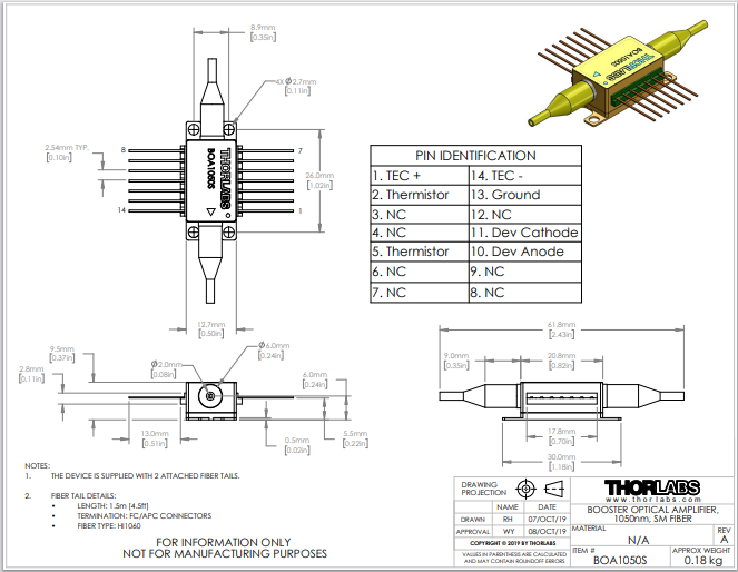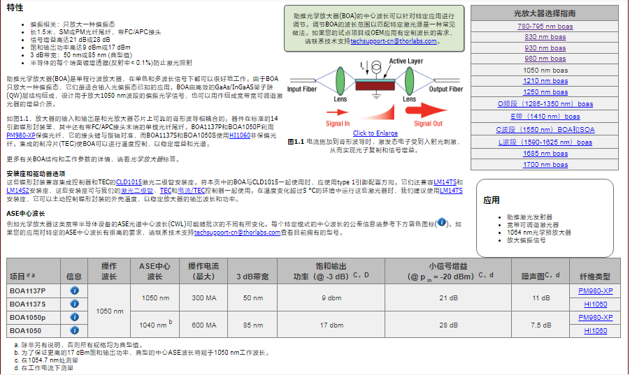 Thorlabs索雷博     BOA1050S - 助推光学放大器