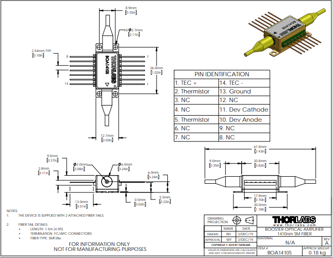 Thorlabs索雷博 BOA1410S - 助推光学放大器