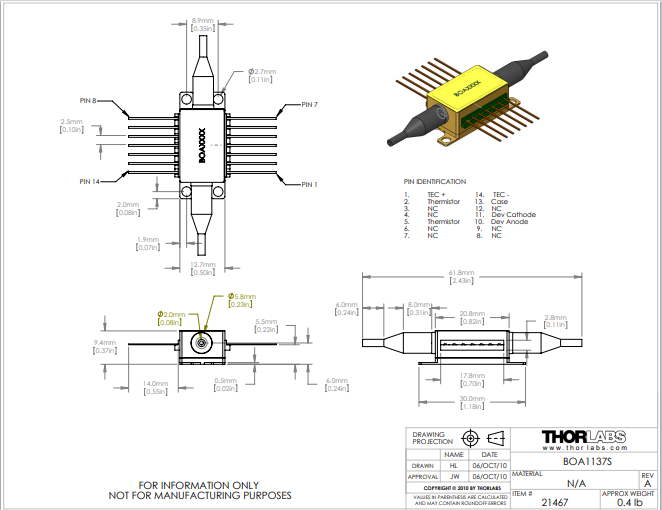 Thorlabs索雷博     BOA1137S - 助推光学放大器
