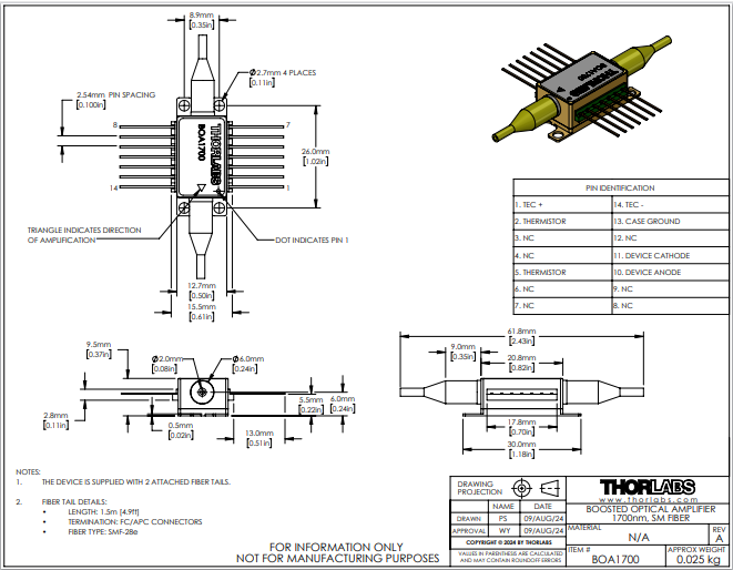 Thorlabs索雷博 BOA1700 - 助推光学放大器