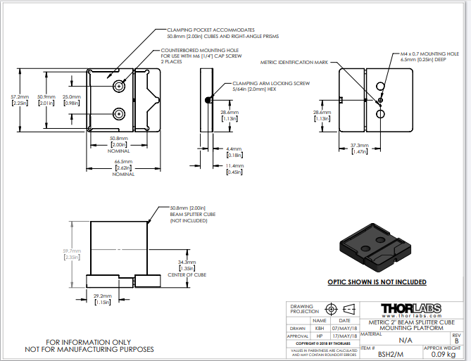 Thorlabs索雷博 BSH2/M - 平台安装座
