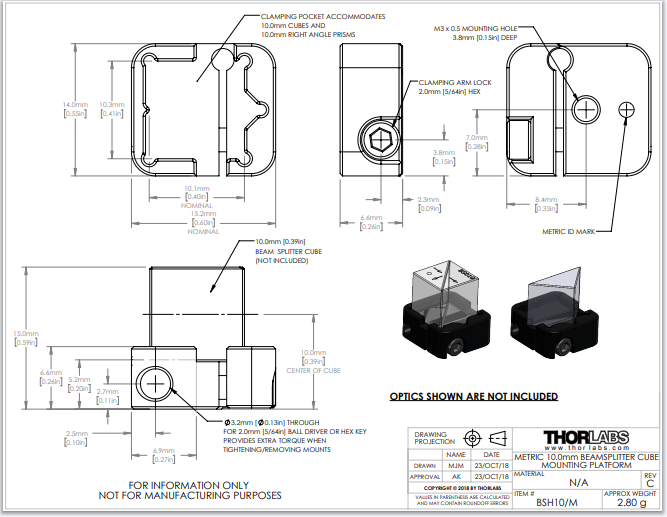 Thorlabs索雷博 BSH10/M - 平台安装座
