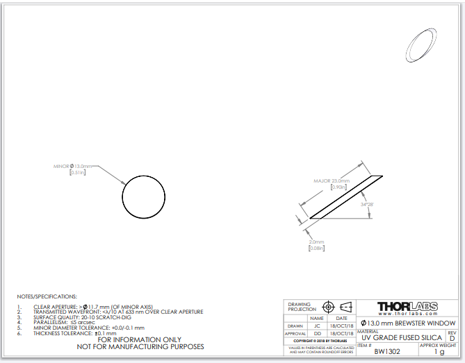 Thorlabs索雷博     BW1302 - 布儒斯特窗口片