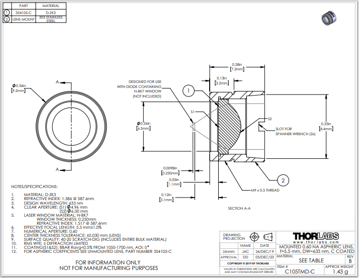 Thorlabs索雷博     C105TMD-C   非球面透镜